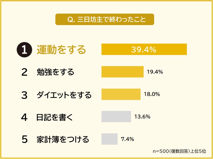- 三日坊主になってしまうことランキング。「勉強」「ダイエット」を抑えた1位は“あれ”だった