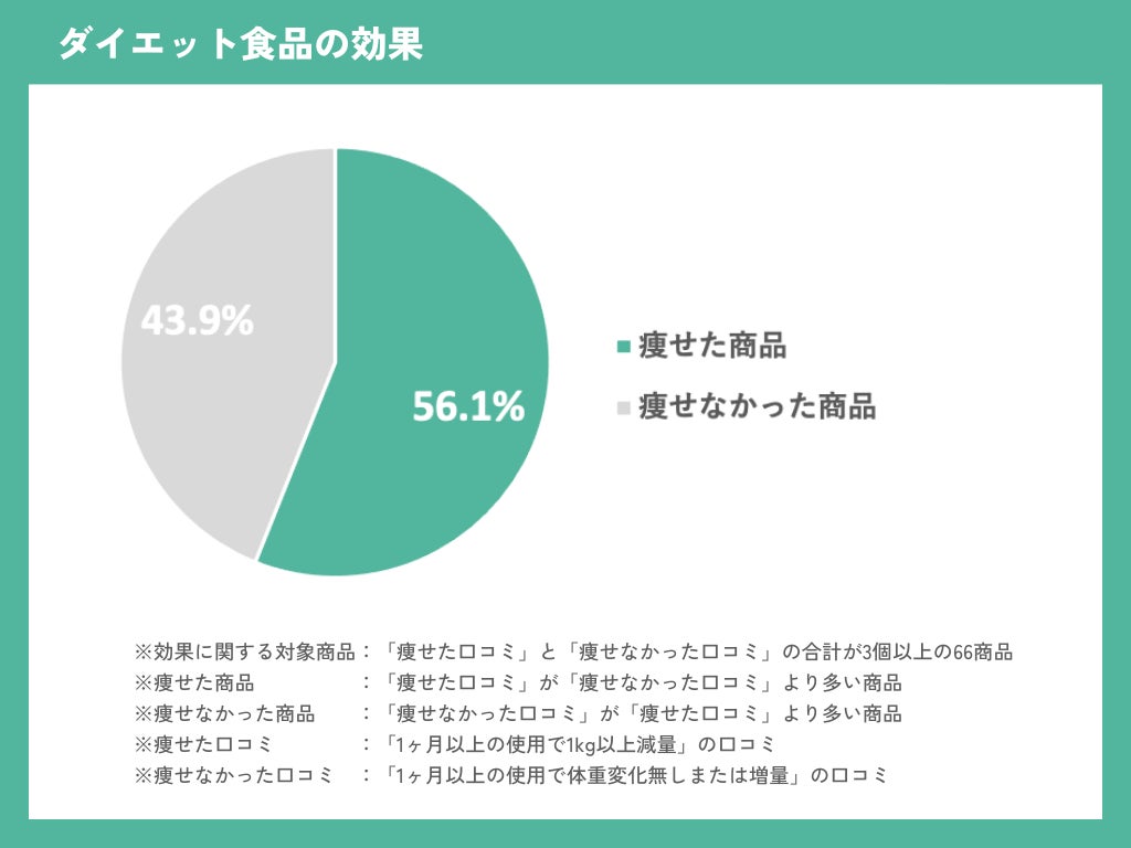 - 【ダイエット食品の効果に関する実態調査】「痩せた」ダイエット食品は56.1%とやや多い