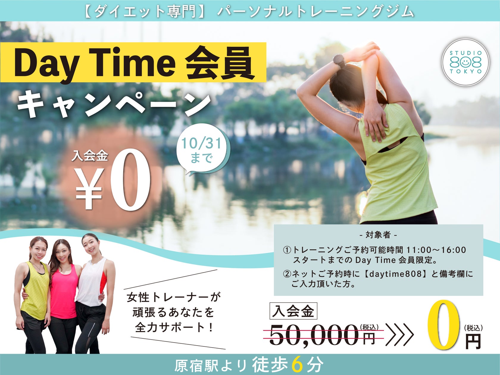 【原宿|ダイエット専門ジム】人気パーソナルトレーニングジム “808TOKYO” が入会金無料となる『Day Time会員キャンペーン』を開始!!