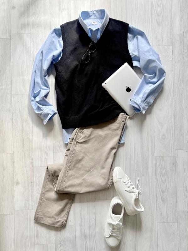 着るだけでダイエット? 【失敗しない! スマートカジュアル】(2)濃色のVネックベスト