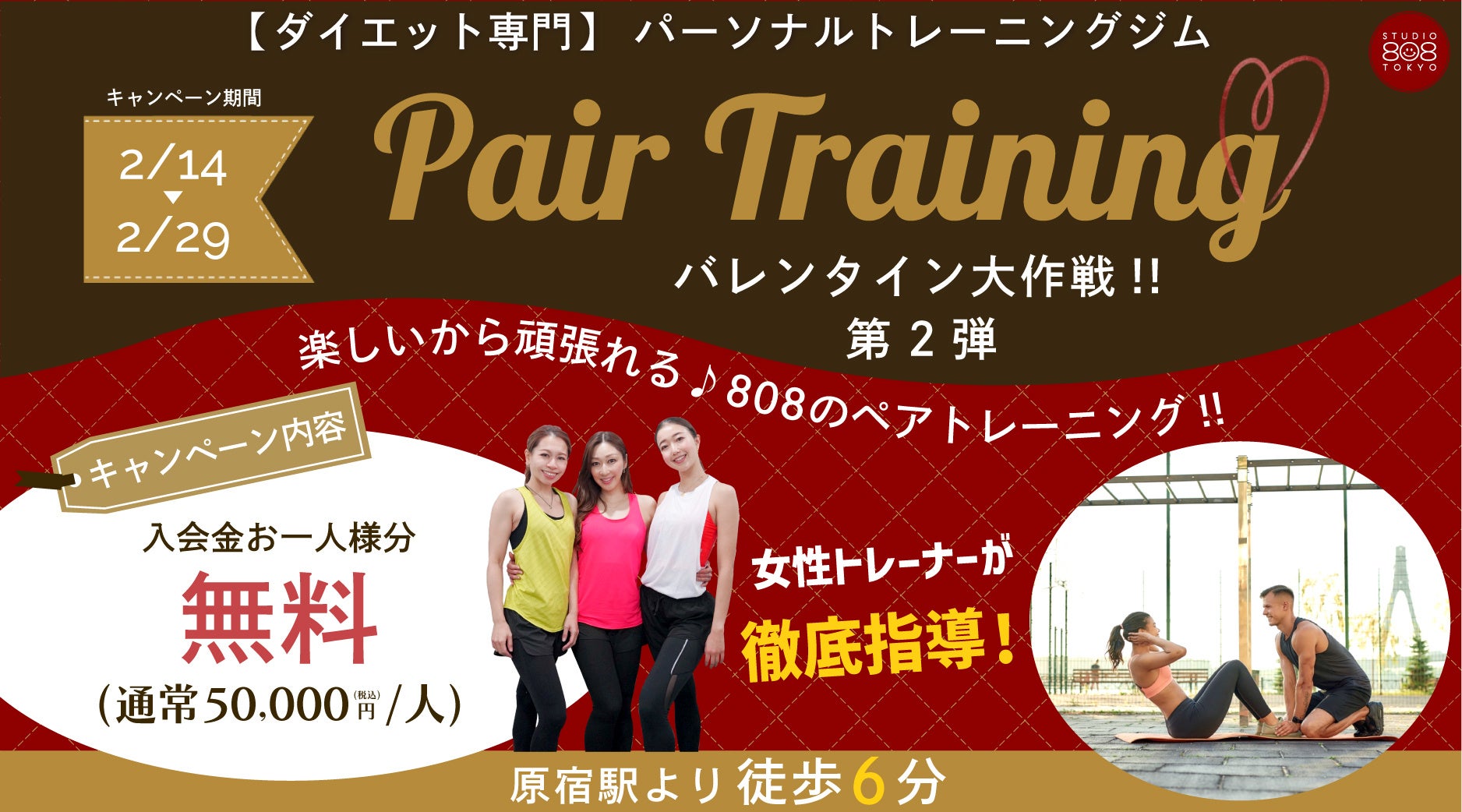 【原宿|表参道ダイエットジム】夫婦・カップル・友達と…ダイエット専門パーソナルトレーニングジム "808TOKYO" が、入会金おひとり様分無料となる『ペアトレーニングキャンペーン』を開始しました!!