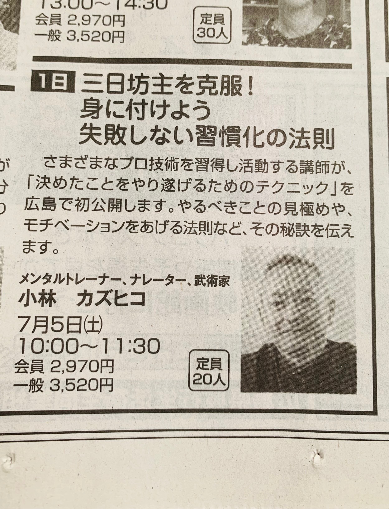 本日の中国新聞12面の「中国新聞文化センタークレドビル教室」の講座案内の左下にご注目。はい、また非常にアヤシイ講座を1日限定で開催します。決して器用ではない私ですが、時間をかけて取り組んだものは100%プロレベルに達している。途中で...