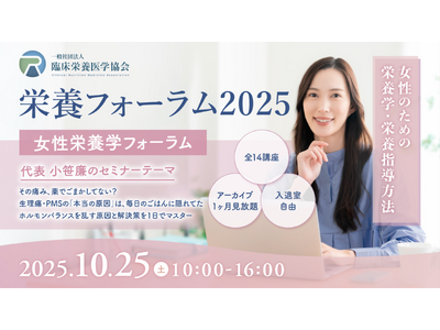 セミナー詳細・申込はこちら一般社団法人臨床栄養医学協会は、「毎月の生理痛やPMS」「繰り返すダイエット」といった女性のあらゆる不調や悩みに対し、栄養学の視点からアプローチするオンラインイベント『女性栄養学フォーラム』を、2025年10月25...