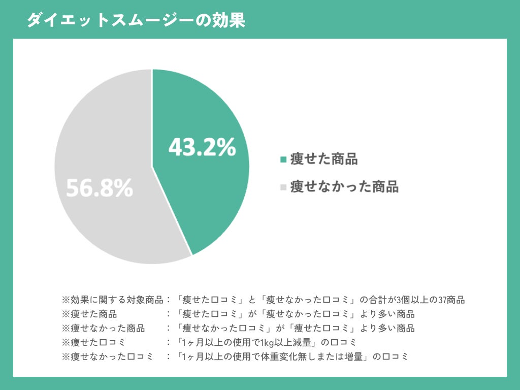 - 【ダイエットスムージーの効果に関する実態調査】「痩せた」スムージーは37商品中、16商品