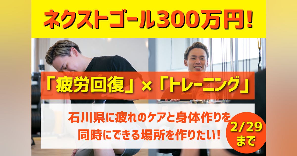 - 「疲労回復×トレーニング」で疲れを取りながら身体作りができるジムを作りたい!公開前